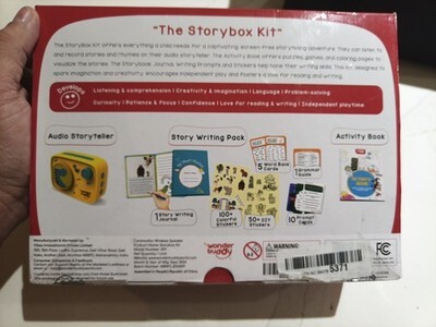 The WonderBuddy Kids ScreenFree Audio Player is a bright yellow device that is designed to provide children with a screen-free educational experience. With over 500 preloaded stories and rhymes, this audio player is perfect for engaging young minds and fostering a love for learning. The WonderBuddy brand ensures high-quality content and entertainment for children, making it a great tool for parents looking to encourage their kids to explore the world of music and art in a fun and interactive way. Open box