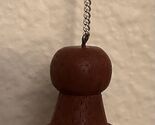 Size can vary but is generally about 2 to 2.25 inches long. The chain is approximately 7 inches long with a small wooden fob on the end.