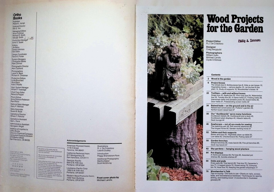 A comprehensive guide for DIY enthusiasts, this vintage Ortho Books edition of 'Wood Projects for the Garden' offers detailed instructions for 87 projects. It features illustrated plans for building everything from garden containers to outdoor furniture, along with tips on materials and techniques. This copy is in good used condition with visible wear to the cover, including edge scuffing, consistent with its age. An excellent resource for woodworkers and gardeners looking for classic, practical designs.
