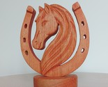 Wooden Horse Head Sculpture with Lucky Horseshoe: Equestrian Gift