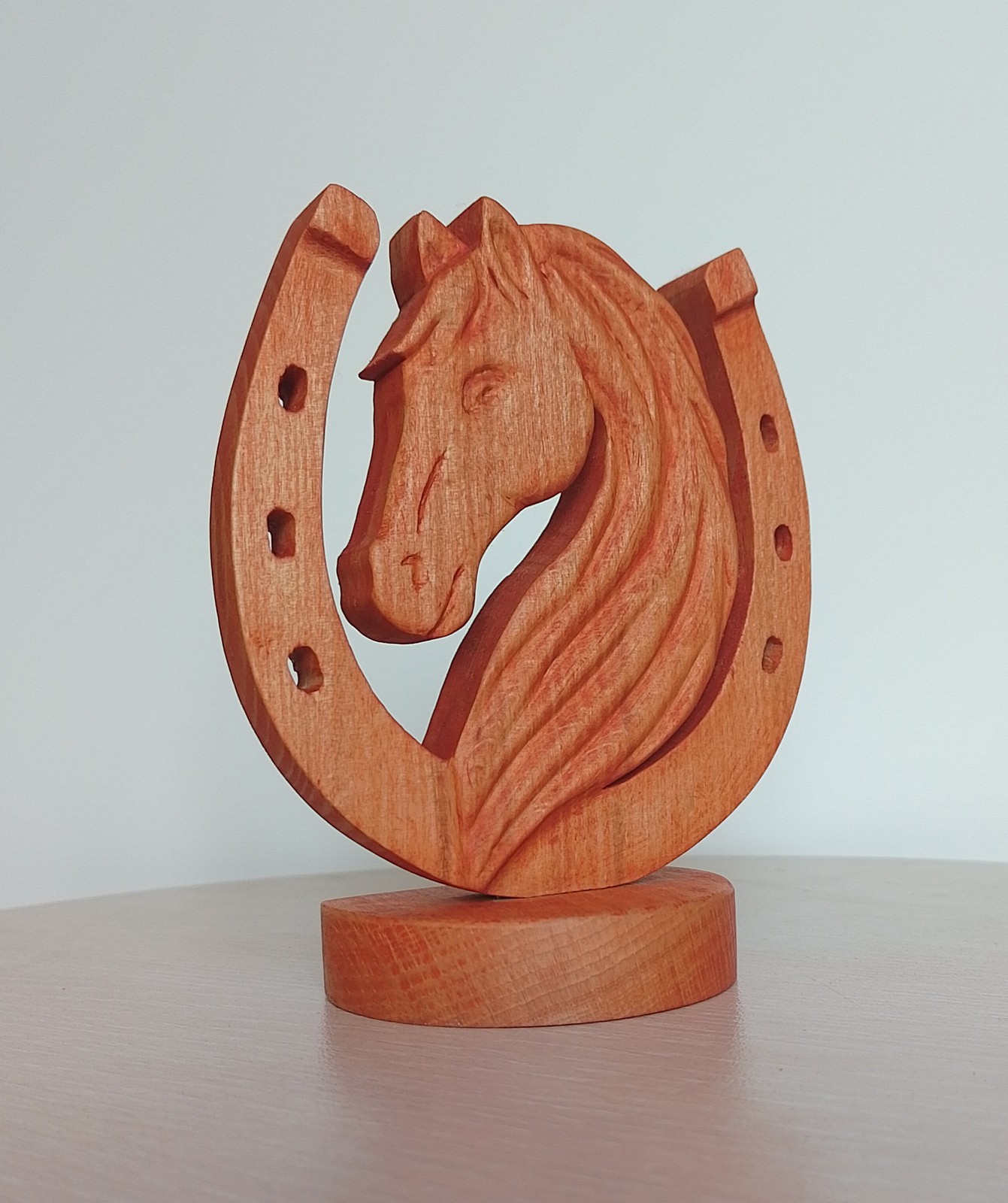 - Wooden Horse Head Sculpture with Lucky Horseshoe: Equestrian Gift
