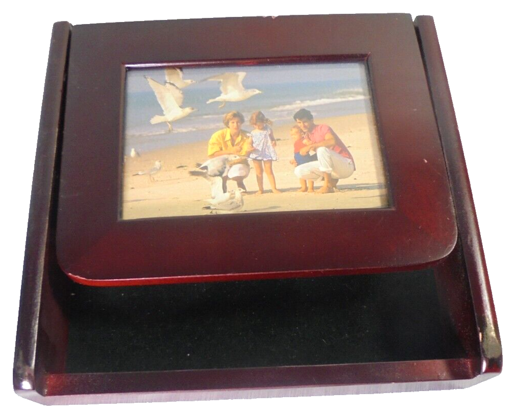 - Wooden Jewelry Box Valet Picture Frame Lid Photo Storage Dresser Display