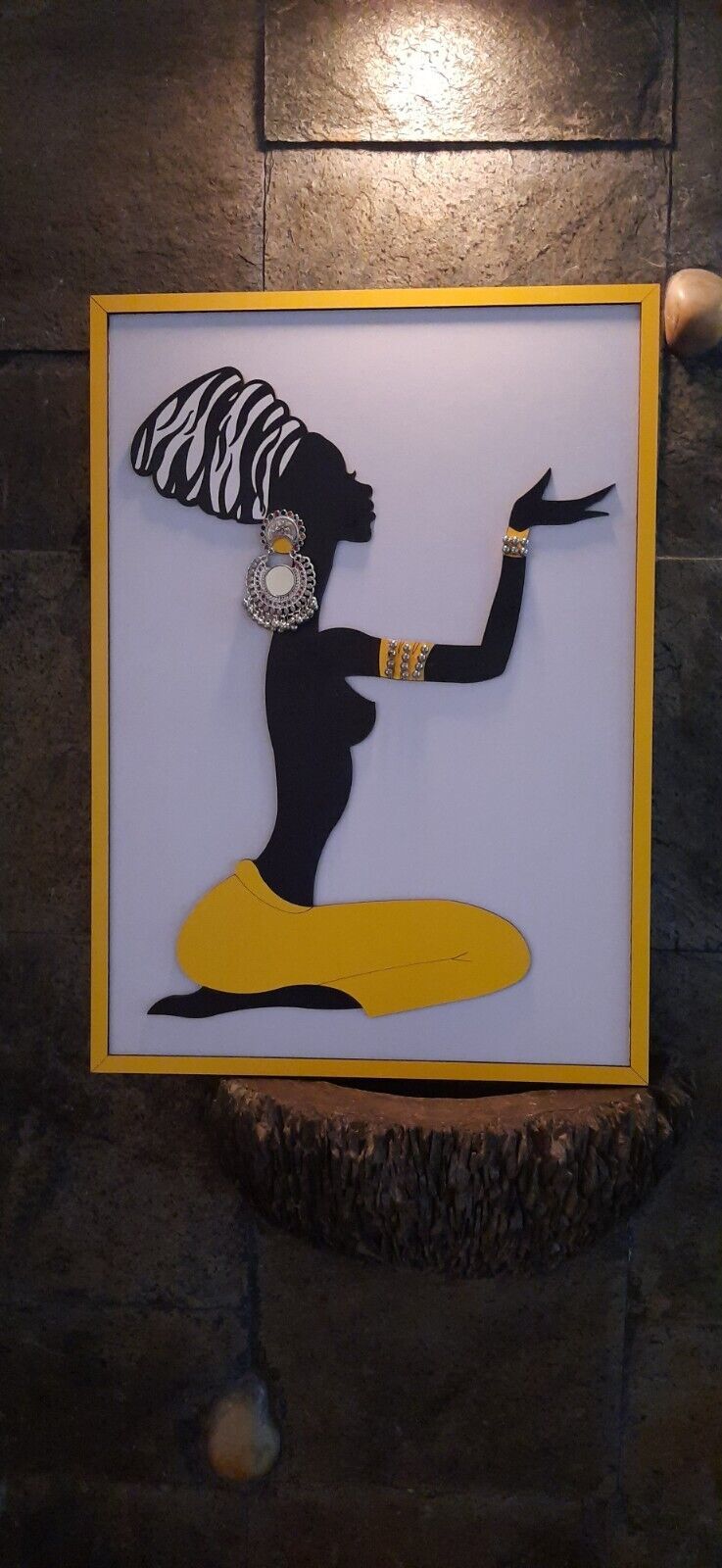 Wooden Lady Wall Art Yellow Black Home Decor Silver Indien Ethnic Earring
