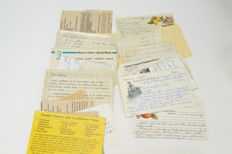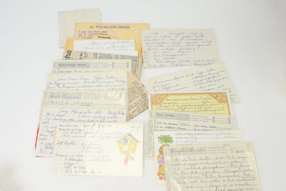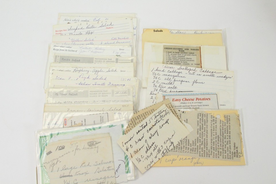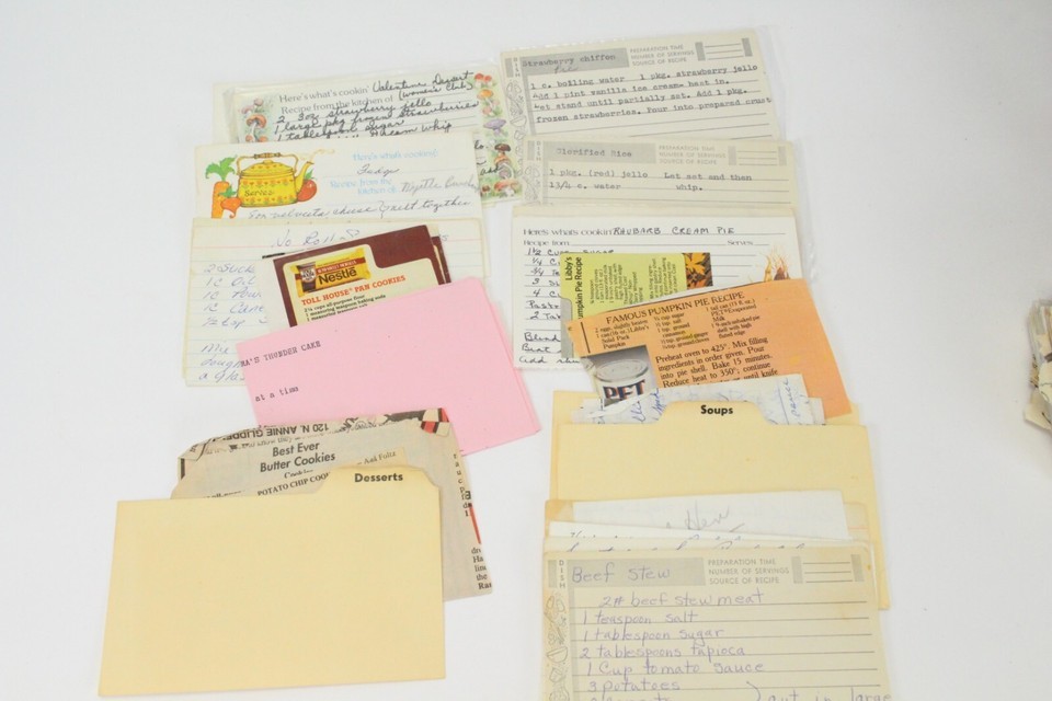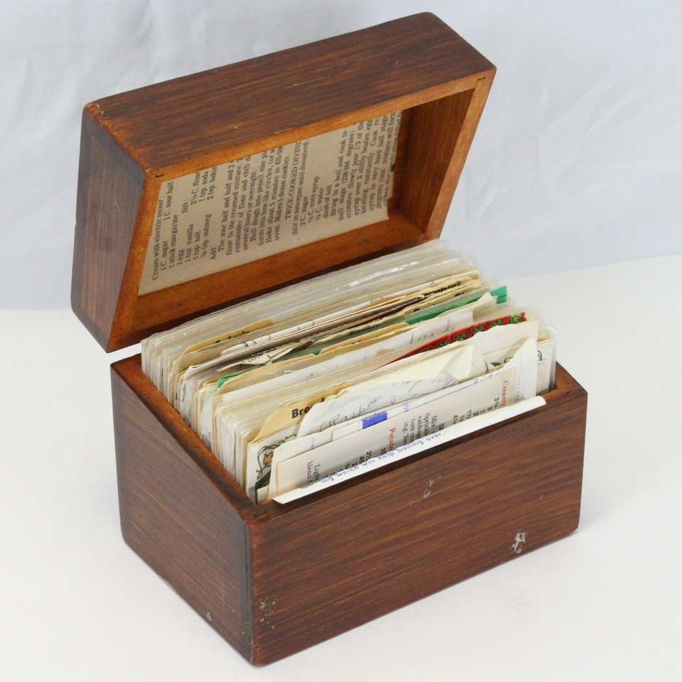 - Wooden Recipe Card Box with Recipe Cards + Vintage Advertising