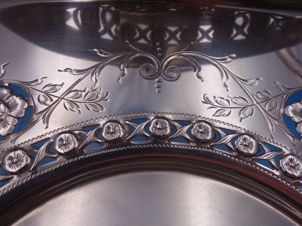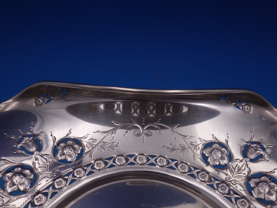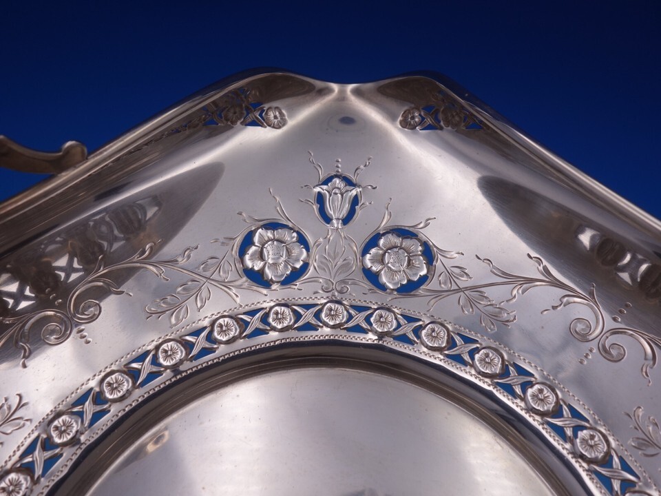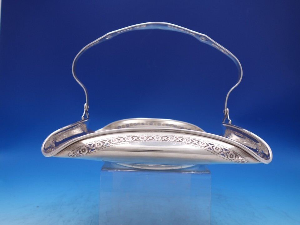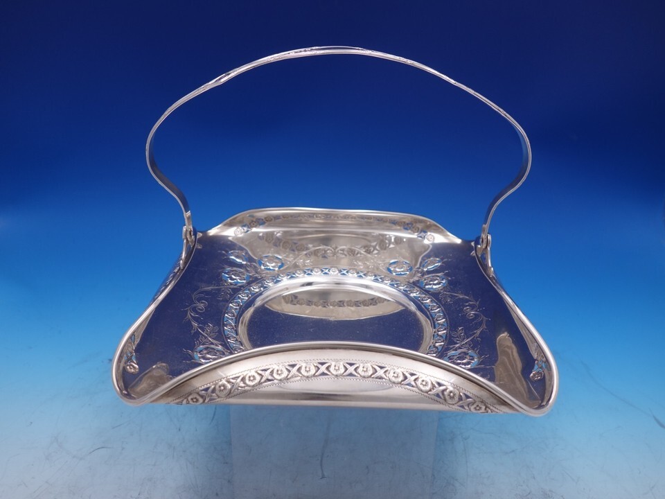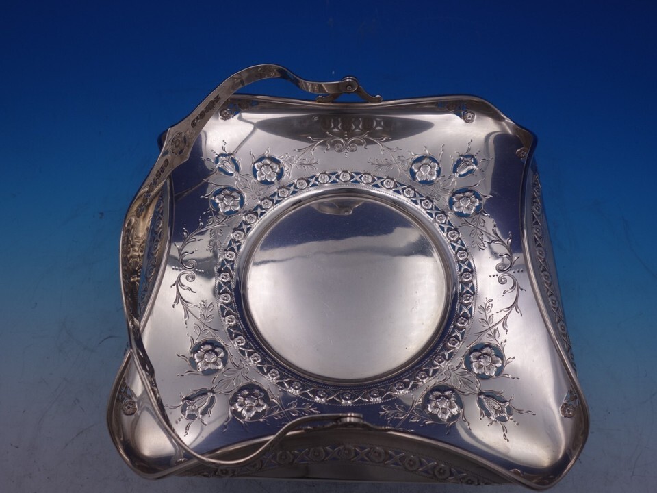 - Woodside Sterling Silver Petit Four Basket with swing handle Pierced 9" (#7317)