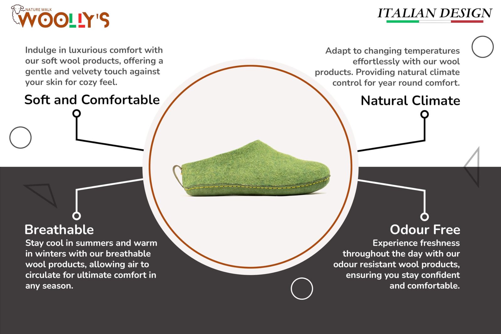 Bullet point: Unmatched Comfort : Flip into the pure New Zealand wool and embody it with every highly-priced step to get comfortable and cozy. Breathe in with breathable design residences that allow your toes to stay cool even after hours of use. With natural climate control properties, Woollyes makes certain that your feet are comfortable in any season, ensuring you have a comfortable lounging experience.