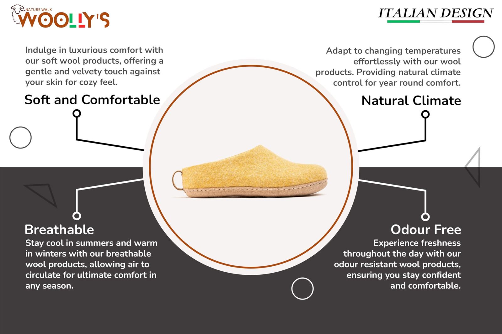 Bullet point: Unmatched Comfort : Flip into the pure New Zealand wool and embody it with every highly-priced step to get comfortable and cozy. Breathe in with breathable design residences that allow your toes to stay cool even after hours of use. With natural climate control properties, Woollyes makes certain that your feet are comfortable in any season, ensuring you have a comfortable lounging experience.
