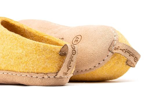 Woolly's Indoor Open Heel Slippers With Leather Sole (Mustard Yellow) - 36 | Pre