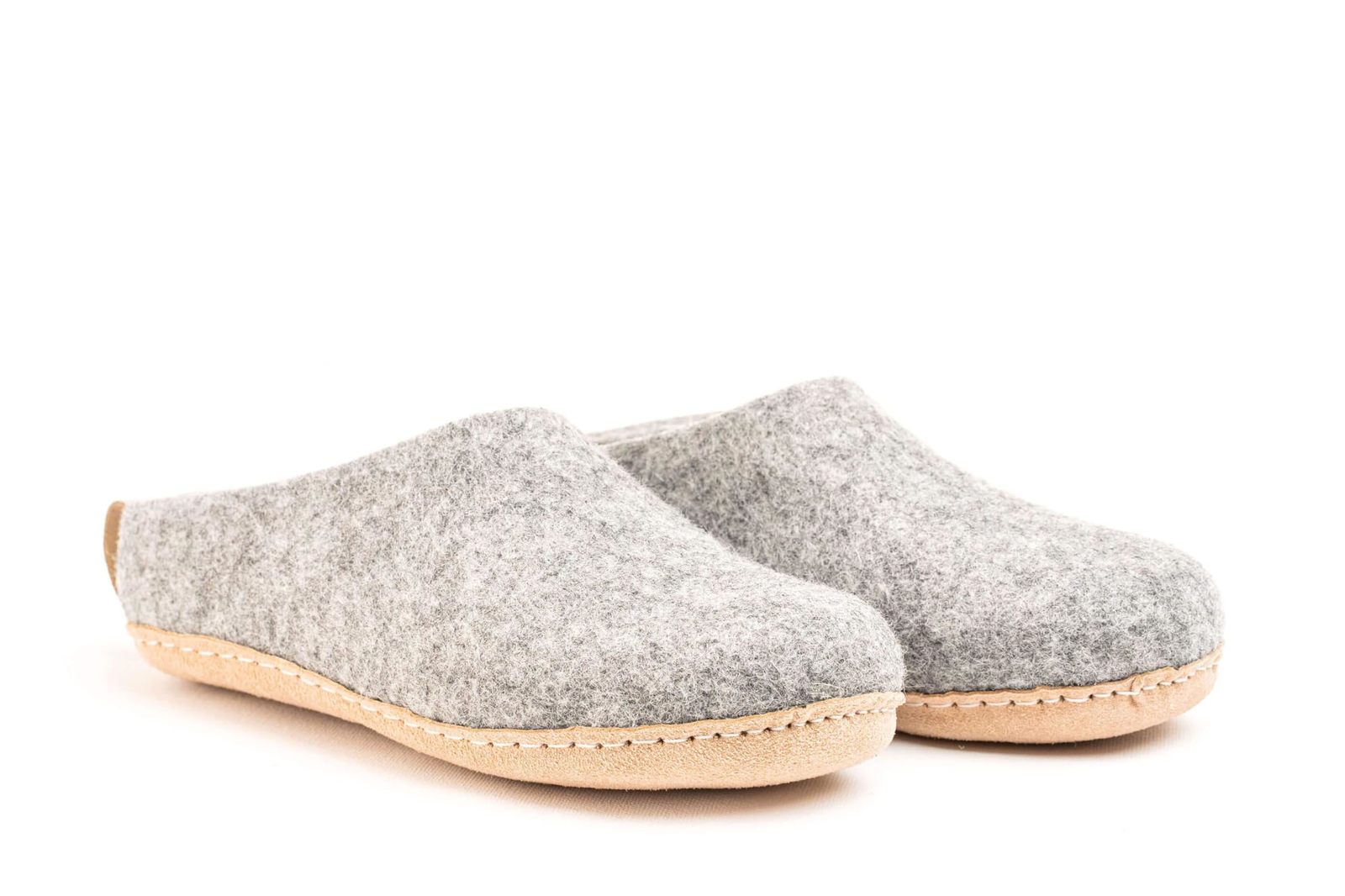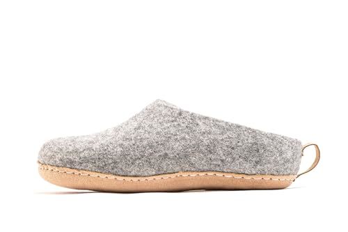 Woolly's Indoor Open Heel Slippers With Leather Sole (Natural Grey) - 38 | Premi