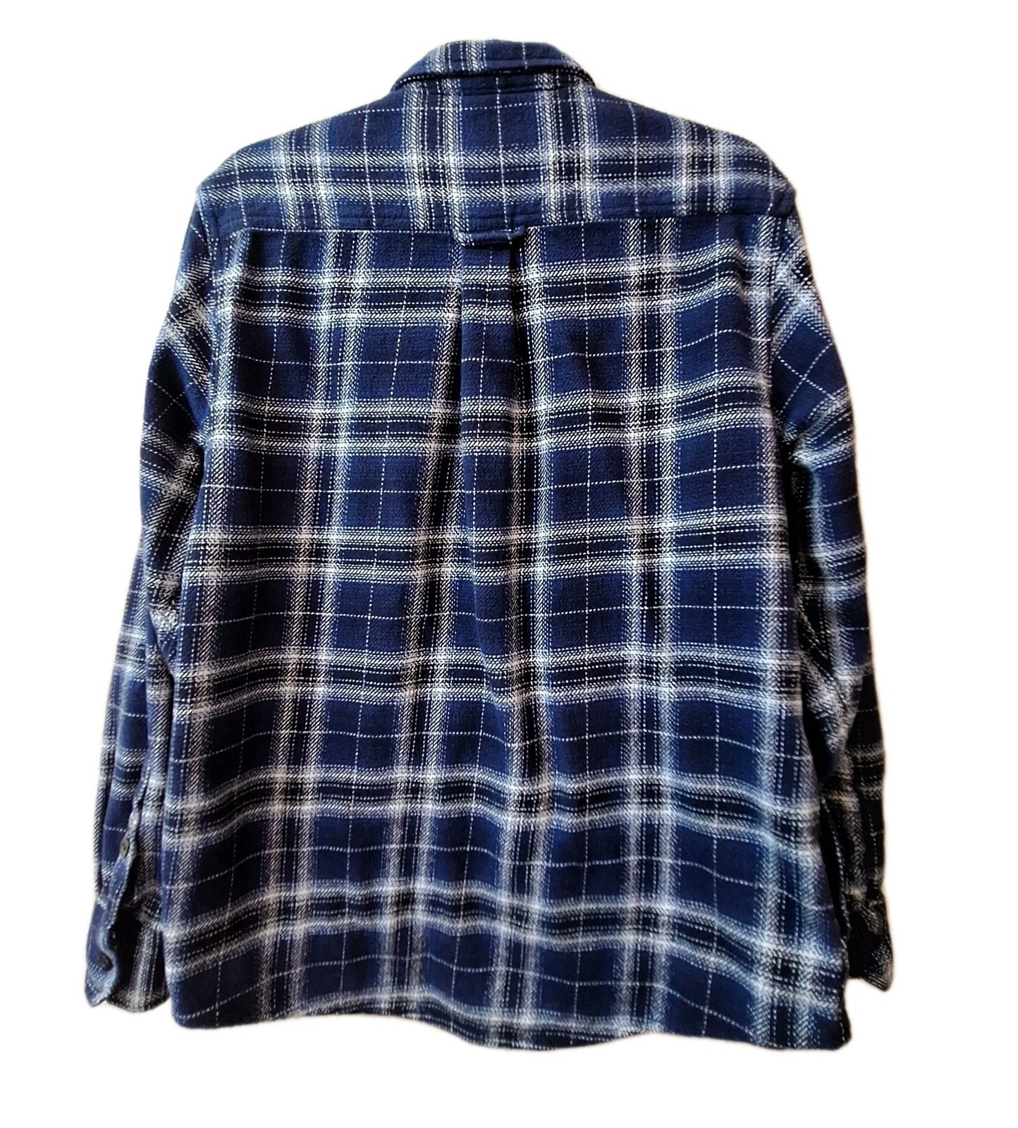 - Woolrich Shirt Mens Medium Blue Plaid Flannel Heavyweight Shacket Pockets Cotton