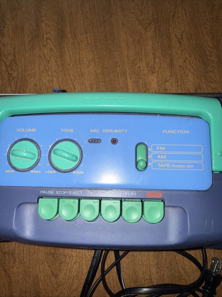 - WORKING Sony CFS-E50 - BLUE/GREEN - Radio Cassette Boombox - 1994 RARE W/ Cable