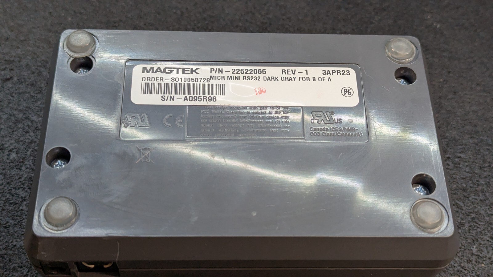 - Works Magtek 22522065 Mini RS232 Dark Gray Check Reader - No Power Adapter
