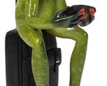 - World Traveler Green Frog With Slack Shoes Sitting On Suit Case Luggage Figurine
