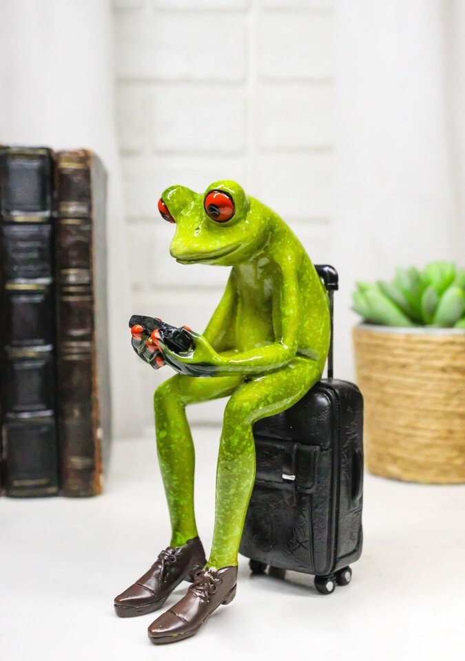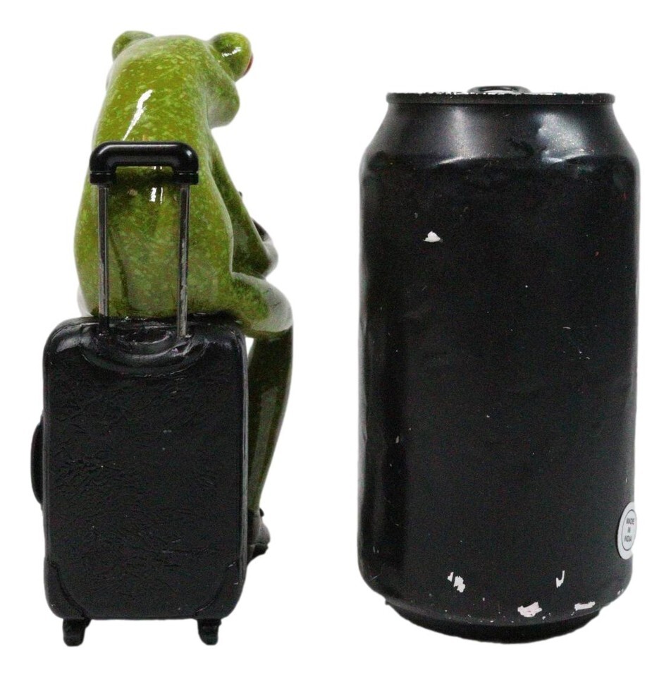 ? Add a touch of travel-inspired whimsy to your decor with this Airport Traveler Green Frog Figurine. Dressed in stylish slacks and shoes, this charming frog looks ready for adventure, blending humor with wanderlust. Perfect for display on shelves, desks, or travel-themed spaces, it's a delightful piece for frog collectors and globetrotters alike-a playful reminder that life's a journey, so travel in style!