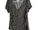 Worthington Stretch Black Yellow Geometric Ruched Blouse XL