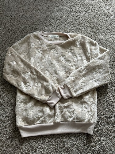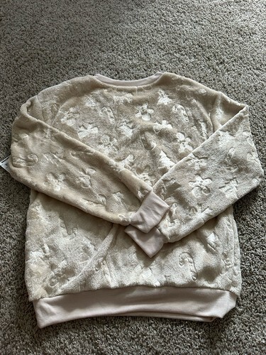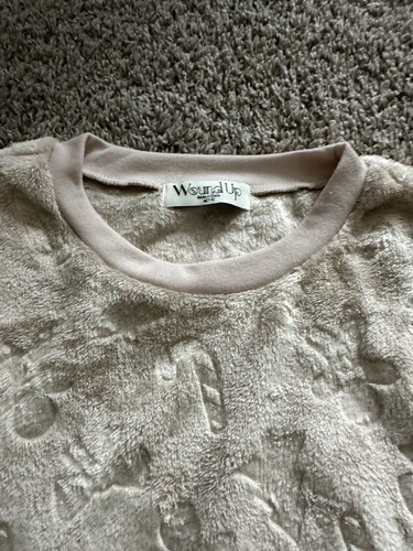 Wound Up Juniors Chrismas Icon Pullover Beige Fleece Lining Velour Size Medium