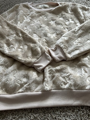 - Wound Up Juniors Chrismas Icon Pullover Beige Fleece Lining Velour Size Medium