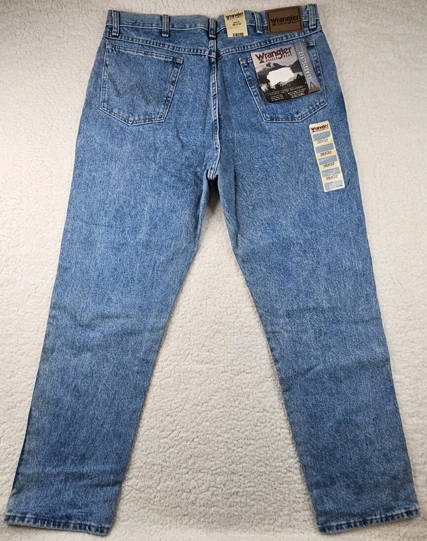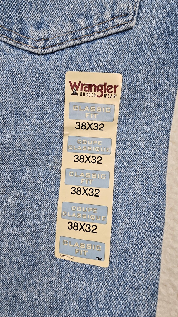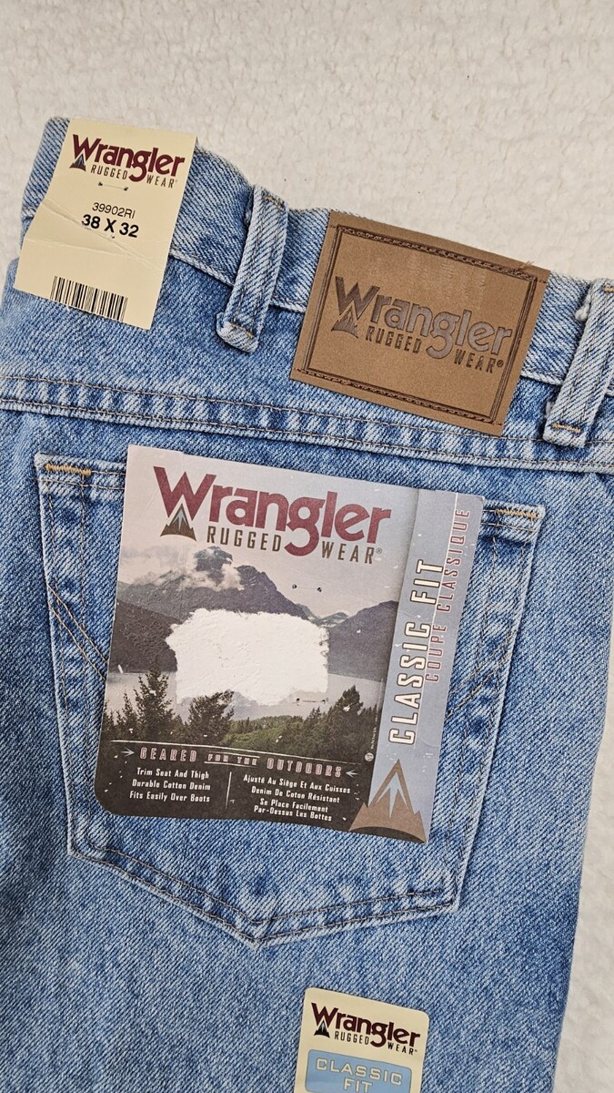 - Wrangler Jeans Mens 38x32 Blue Denim Pants Rugged Wear Classic Fit