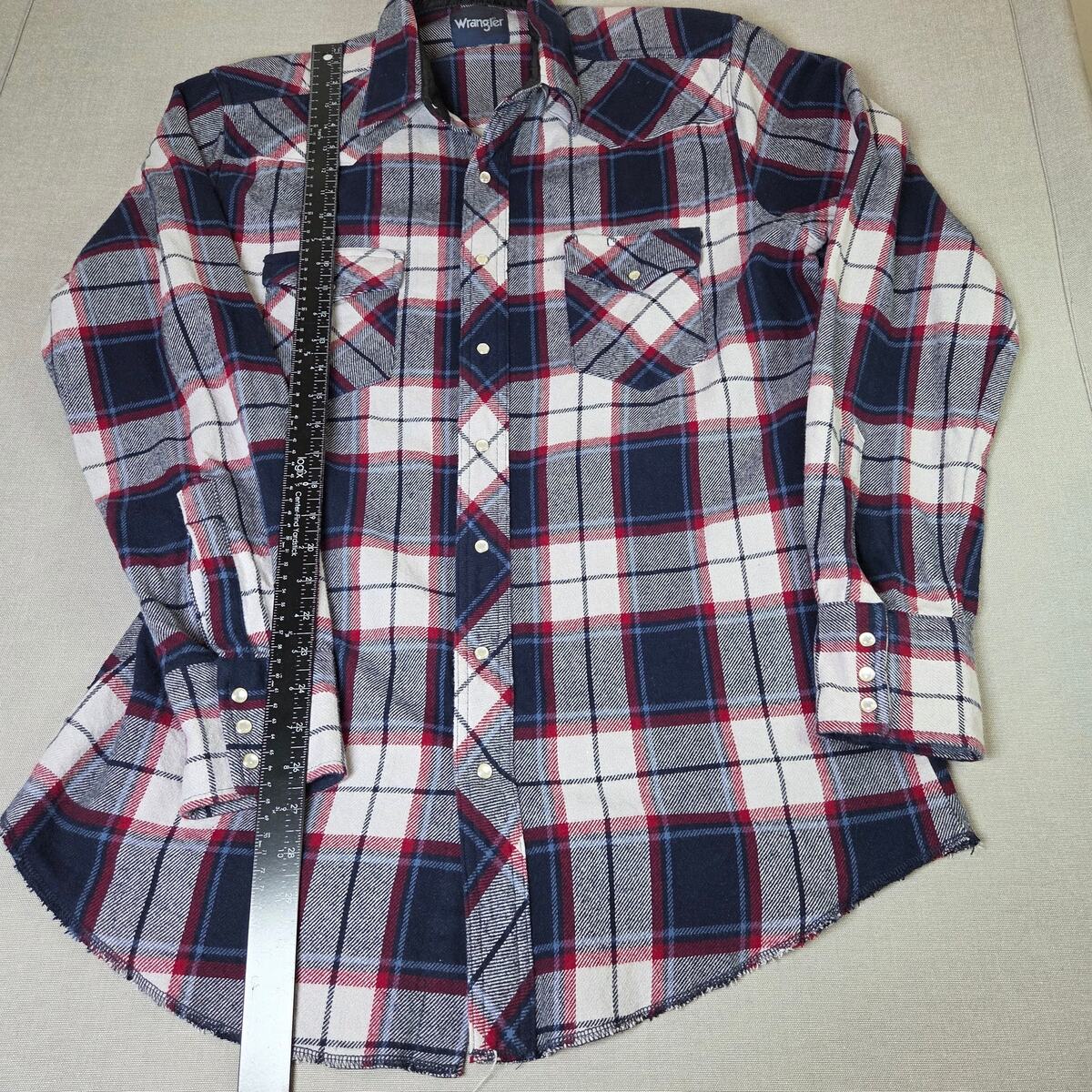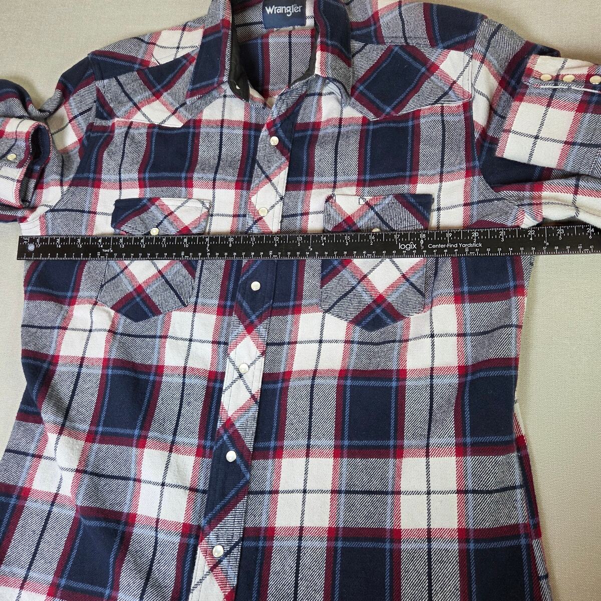 - Wrangler Pearl Snap Western Plaid Long Sleeve Shirt Red Blue 22x32