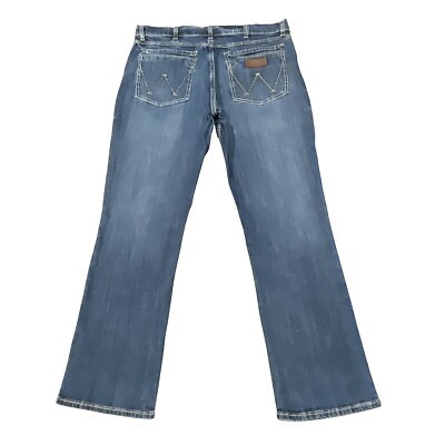 - Wrangler Retro Jeans Mens 36x31 Blue Medium Wash Slim Boot Cut Western Cowboy