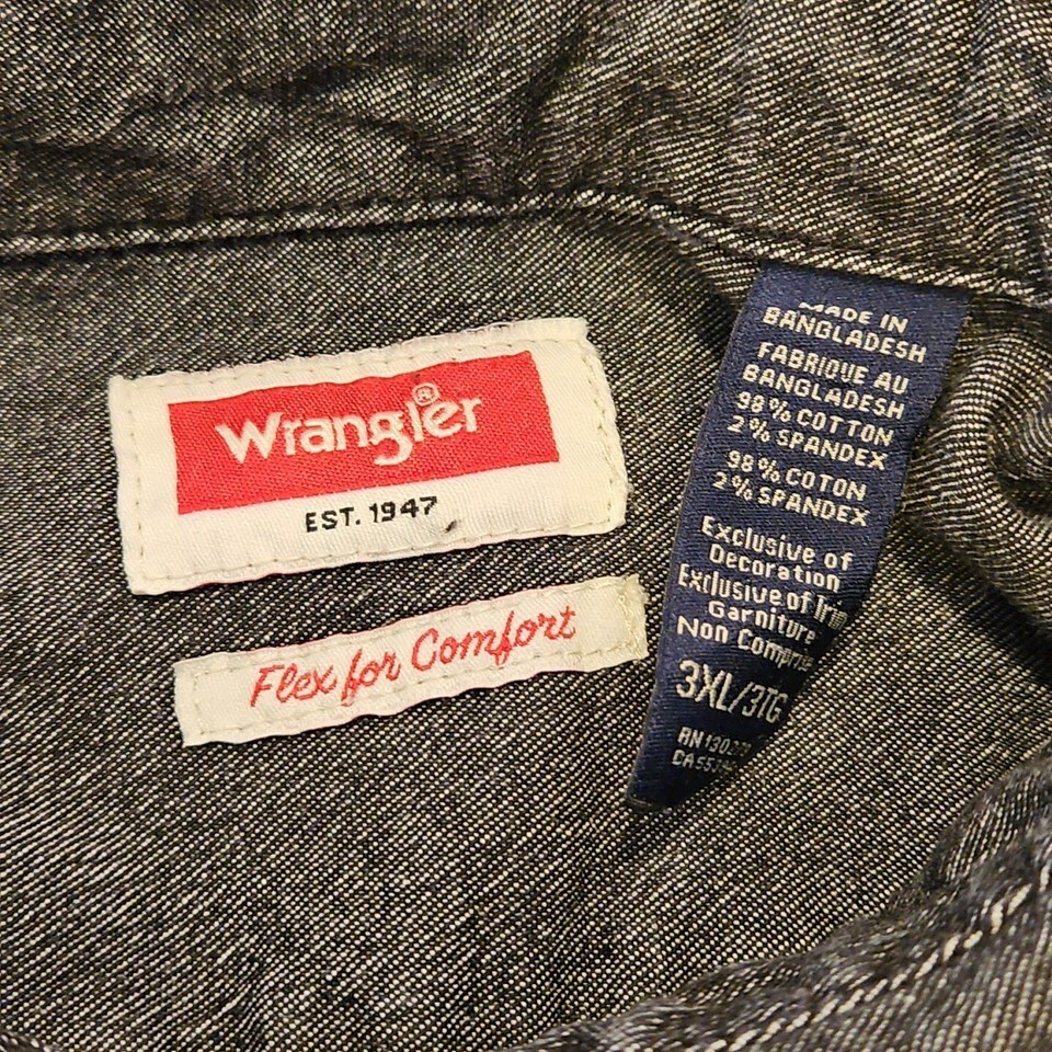- Wrangler Western Shirt Mens 3XL Black Heavyweight Denim Flex for Comfort Stretch