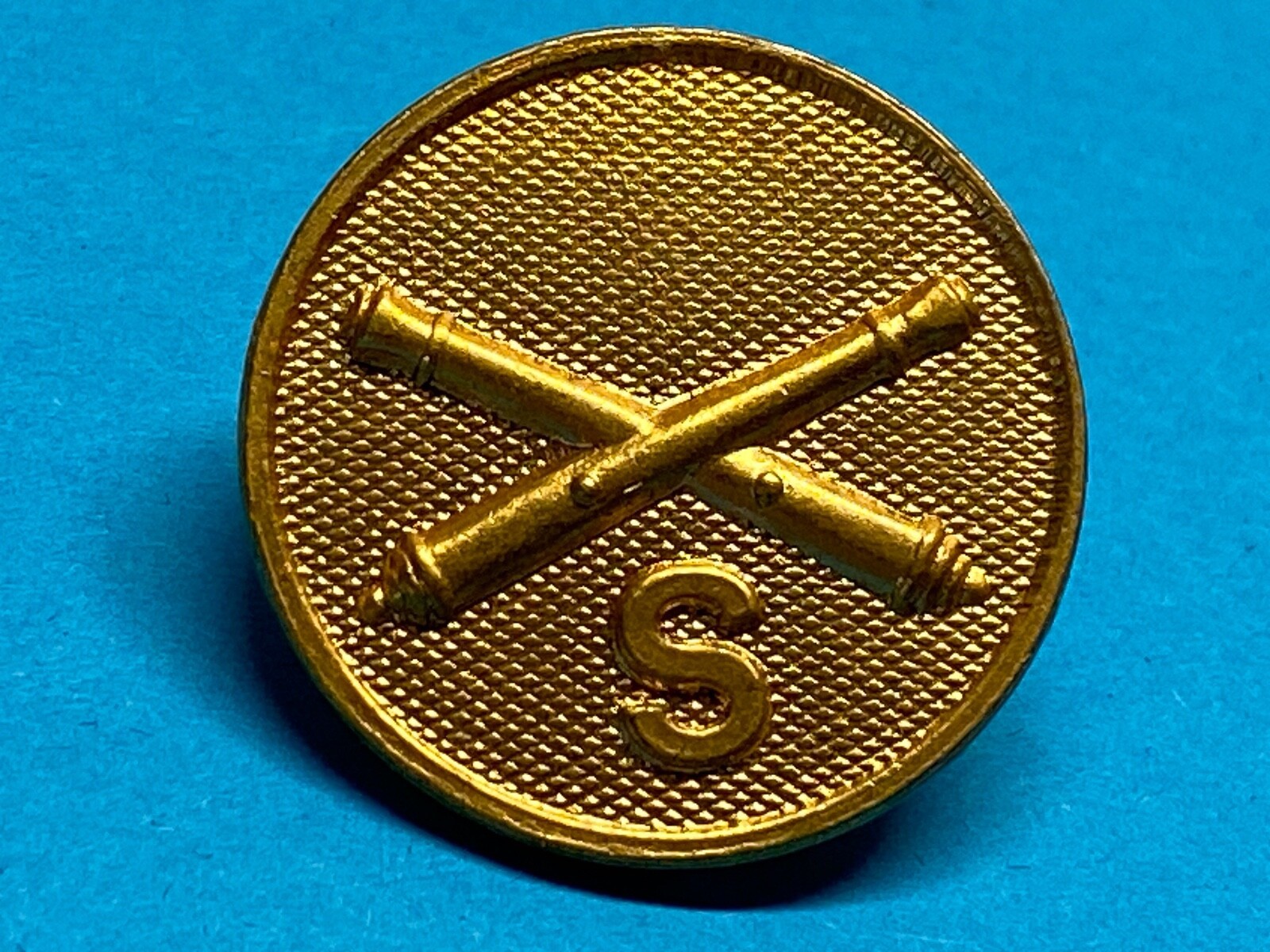 - WWI – 1924, U.S. ARMY, TYPE I, GILT, COLLAR DISK, SERVICE AND SUPPLY, ARTILLERY
