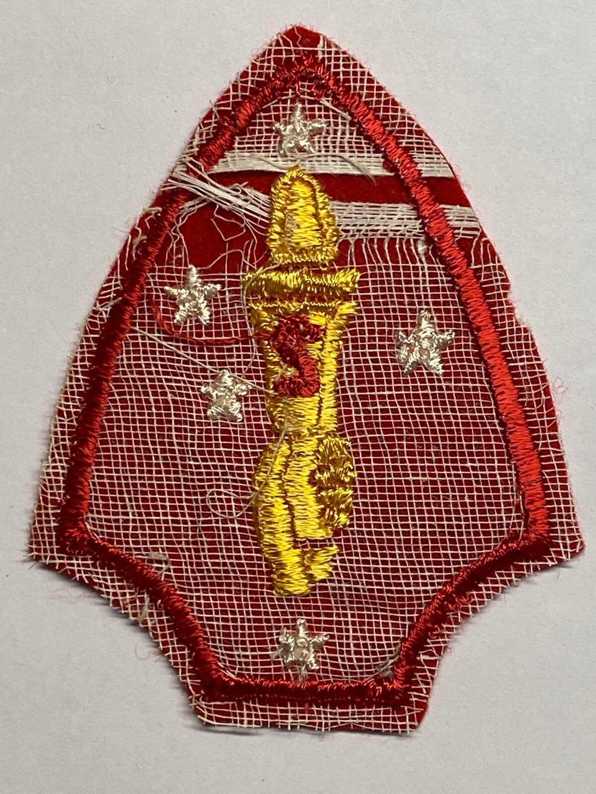 WWII, USMC, 2nd MARINE DIVISION, PATCH, FELT, YELLOW HAND, VARIATION, CLEAN