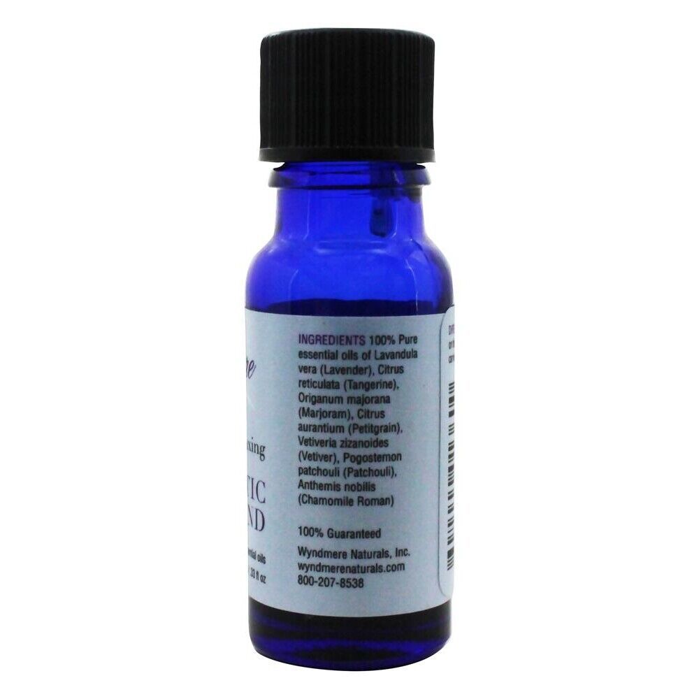 Keep out of the reach of children and away from eyes. Use cautionif pregnant. Highly concentrated. Always dilute before use on skin. For external use only. Safety/Precautions: Essential oils and synergistic blends are for external use only. Call the Poison Control Center if ingested. Do not use them directly on the skin. Always dilute in a carrier oil or unscented lotion before using topically. Test on a small patch of skin first. Keep oils tightly closed and away from children. Essential oils are not to be used without seeking medical advice if pregnant, epileptic, or if you have high or low blood pressure. Always keep away from the eyes. Should oil get into the eyes, wash thoroughly with water for 15 minutes. Wyndmere never recommends internal use of essential oils. Essential oils are highly concentrated and can be potentially toxic if taken internally. Also, ingesting oils is very dangerous because some of the oils are skin and mucous membrane irritants. Wyndmere oils are therapeutic grade and research indicates that because of the concentrated nature of pure oils, they are much more effective through inhalation using a room diffuser or topical absorption using a 1%-3% dilution. Storage: To preserve your oils, store in a cool and dark location. Keep the bottles airtight. Shelf life can be from one year to a couple of years, depending on the oil. A top note citrus oil like Lemon may lose its essence quicker than a base note like Patchouli, which only gets better with time.
