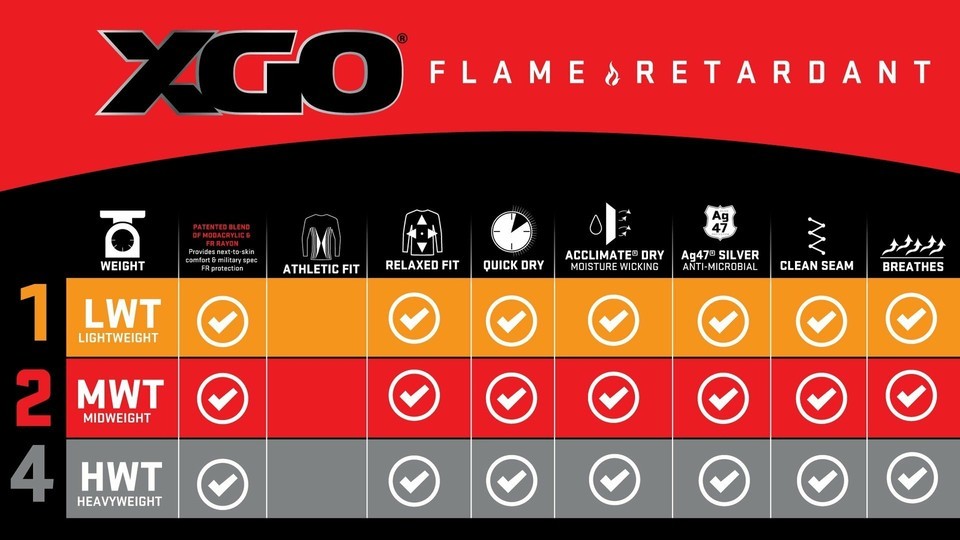 Phase 2 is a midweight patented FR blend of Modacrylic FR Rayon. Warmer option for FR thermal. Great as a layered piece for added warmth. Extremely great feel next-to-skin and a generous cut for comfort. Our FR is inherent and built-in at the yarn level, meaning it won't wash out and provide no melt/no drip protection for the life of the garment. Acclimate Dry moisture management and Ag47 anti-microbial/anti-odor will keep you comfortable and odor-free. Utilizing Clean Seam flat-seaming to provide a comfortable seam next-to-skin helps reduce the risk of friction and irritation. Perfect under Nomex to add some breathability and wicking.