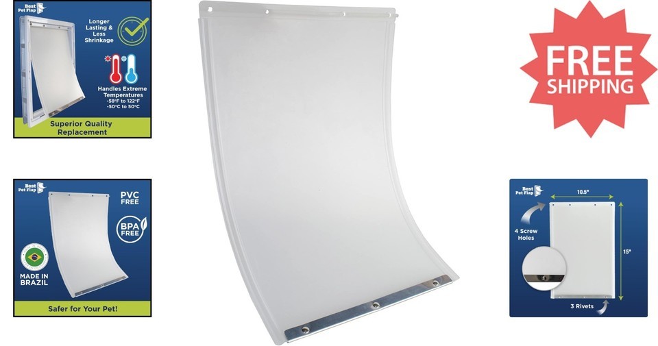 Upgrade your pet?s access with our XL Replacement Dog Door Flap, compatible with IDEAL Plastic and Aluminum frame doors measuring 10.5" x 15". Designed for easy installation with just a screwdriver, this durable flap features four top mounting holes and three rivets for secure fitment. Crafted from eco-friendly, BPA-free materials used in medical and food industries, it offers superior weather resistance and longevity compared to OEM options. Please verify compatibility by checking for the product number RFXLN or DSPRFXL with a round logo on your flap. Made in Brazil, this high-quality replacement outperforms the , ensuring your pet?s safety and convenience. To ensure fast and reliable delivery, we work with multiple fulfillment partners and suppliers. Depending on availability and location, your order may ship from different warehouses or arrive in packaging that varies from item to item. Tracking details are typically provided shortly after shipment, and customer satisfaction remains our top priority. Please note that due to carrier policies and regional regulations, certain items may not be eligible for delivery to specific states or territories.