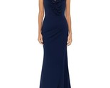 - XSCAPE Women's Ruffled-V-Neck Sleeveless Ruched Gown Navy Size 14 $279