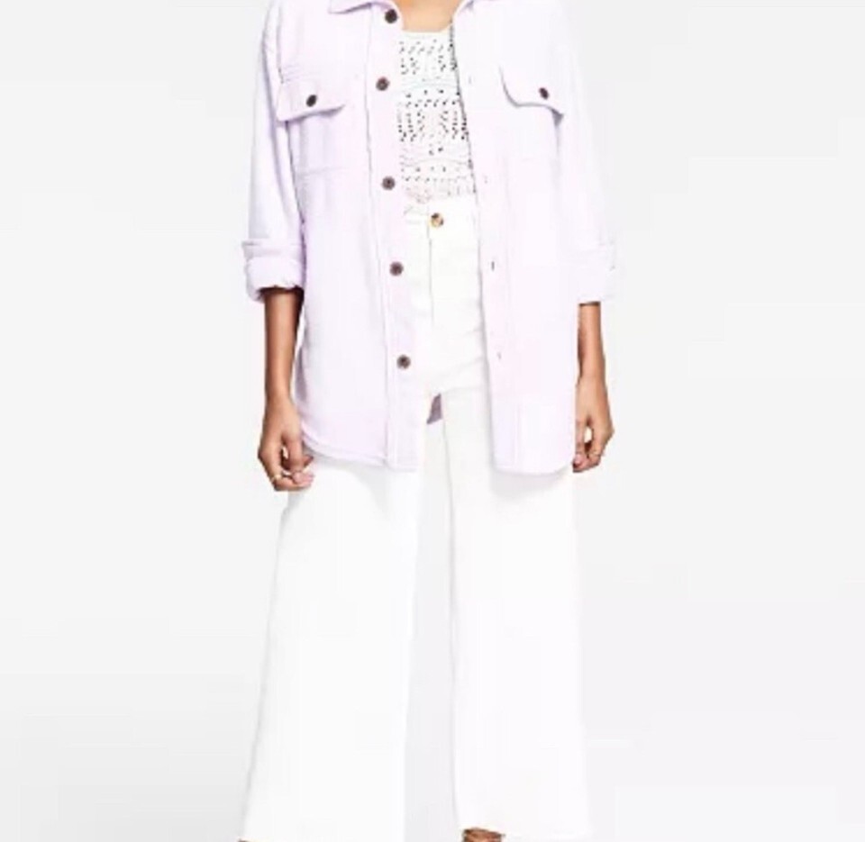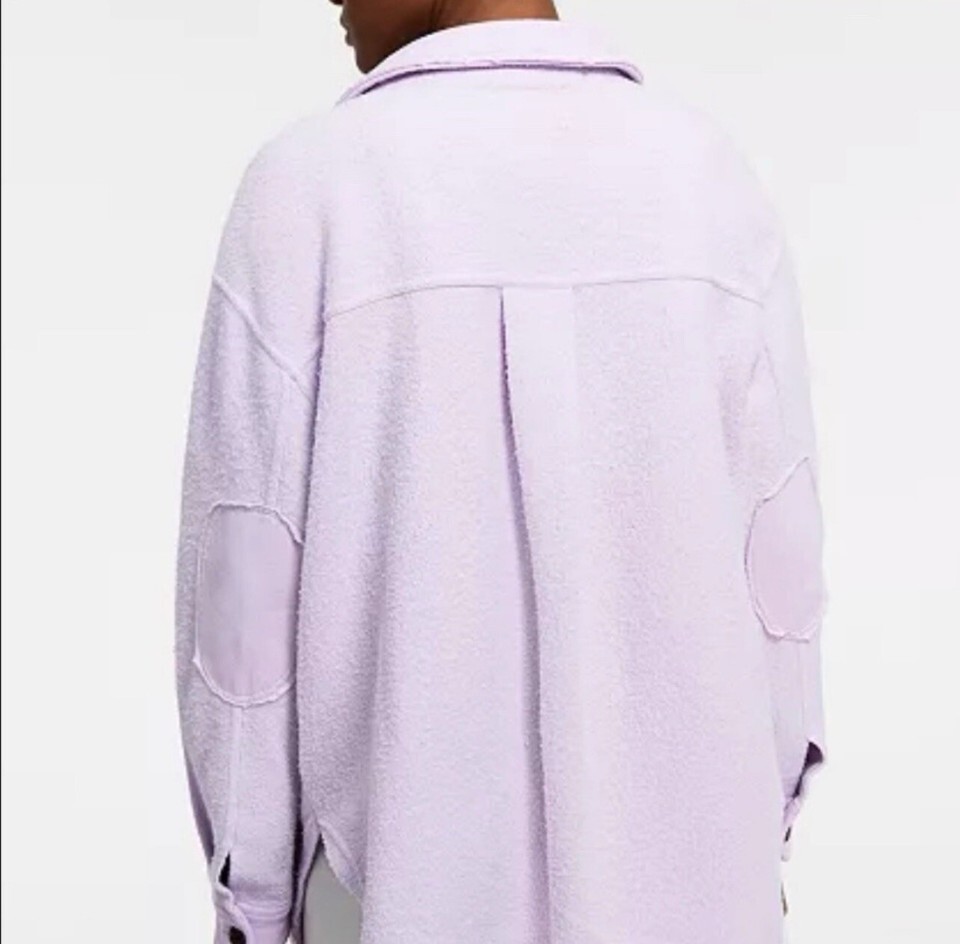 BLACK TAPE Fuzzy Elbow Patch Shacket Shirt Jacket Soft Lilac $99.00 BNWTS