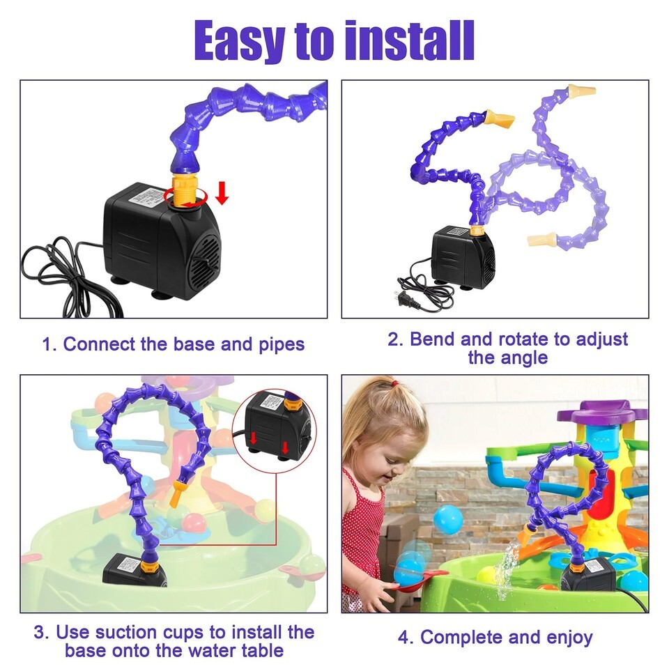 Waterproof Design with Extended Power Cord: Our water table pump is sealed with adhesive to ensure reliable waterproofing. With an extended power cord, it can be safely positioned away from sockets, Allowing children to play with peace of mind