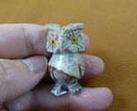 (Internal #Y-BIR-OW-53). Cute Horned owl figurine stands 1-1/2" tall, crafted in Peru of native soapstone. What an attitude! WHITE TAN RUST RED marbled color is natural. New, no defect.