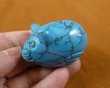 (internal #Y-MOU-705) Excellent carving of a Roly Poly MOUSE is 2-1/8" long. Superb quality of polished DYED BLUE HOWLITE gemstone, this gem has been hand-carved in China. New, no defect. Great for the MOUSE collector!