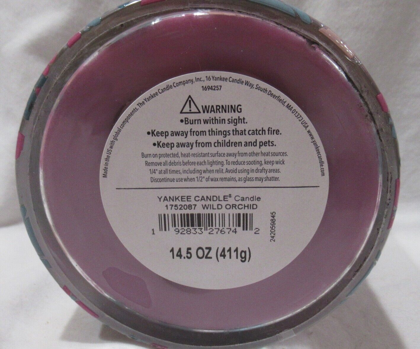 - Yankee Candle 3-Wick Jar 14.5 oz "I LOVE YOU" WILD ORCHID purple spring