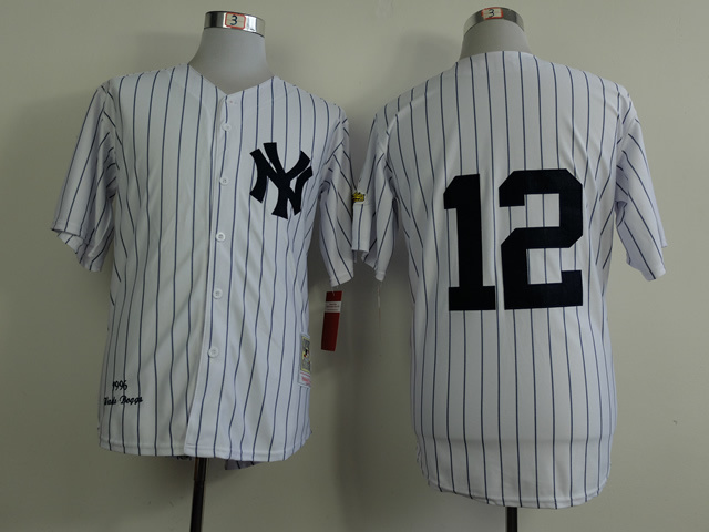 Yankees #12 Wade Boggs Jersey Old Style Uniform White Stripe
