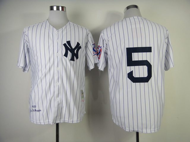 Yankees #5 Joe DiMaggio Jersey Old Style Uniform White Stripe