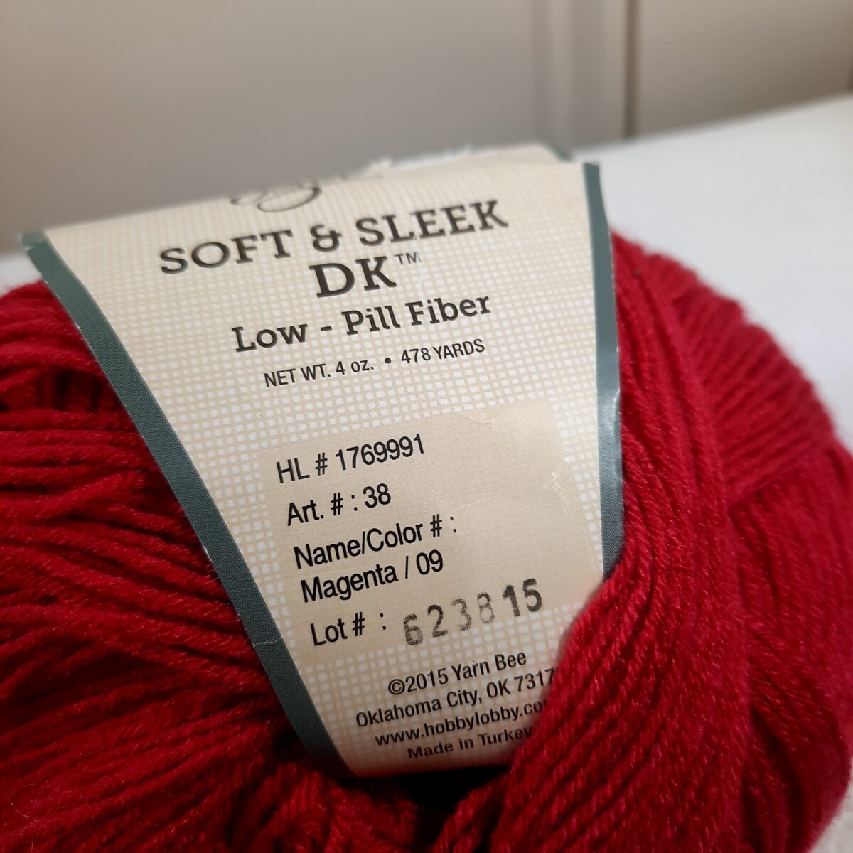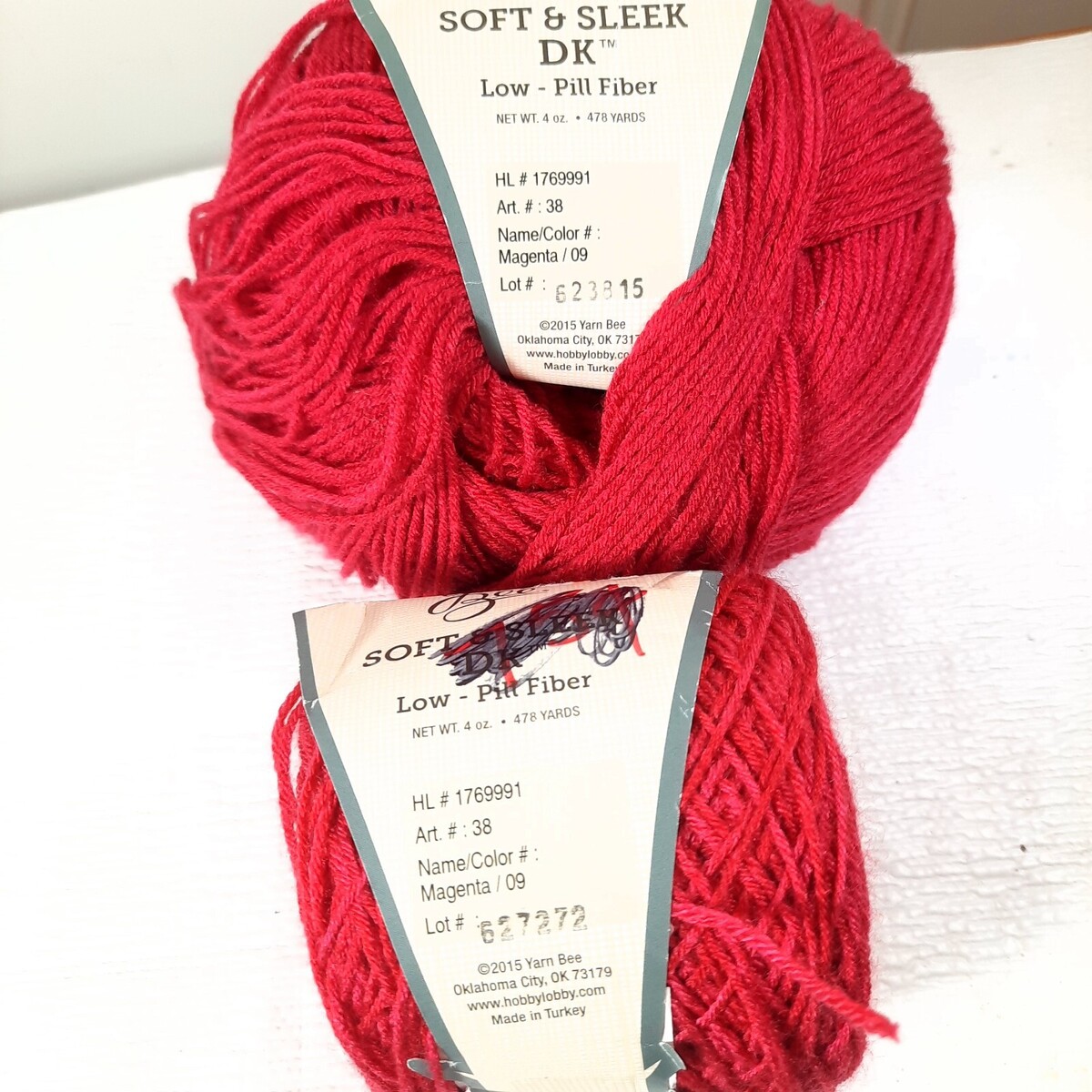 - Yarn Bee Soft & Sleek DK Magenta #09 dark pink low pill fiber acrylic