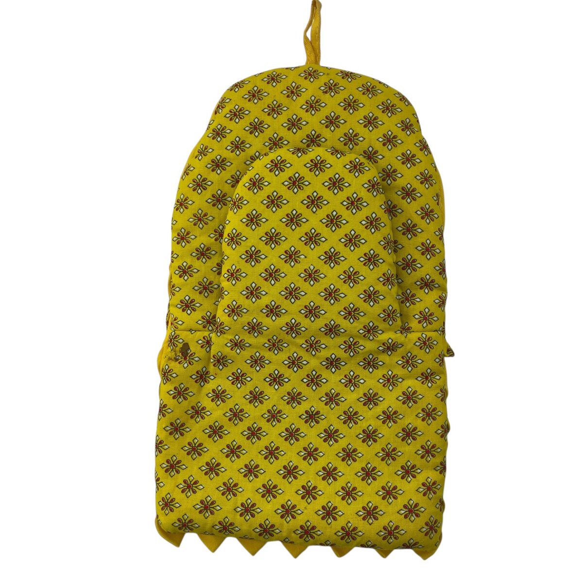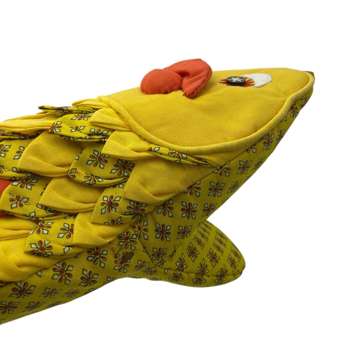 - Color: Yellow with orange accents and patterned yellow fabric