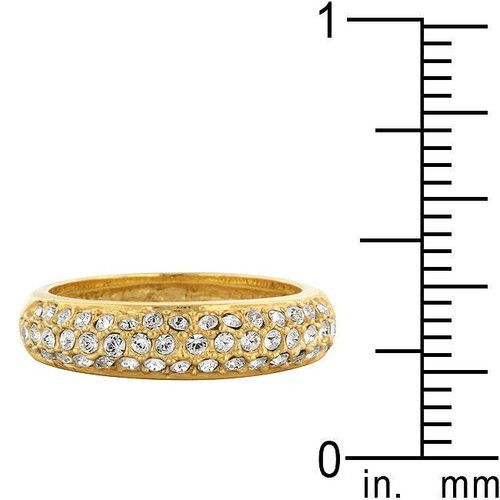 Pave Crystal Gold Band features pave set small crystals on a golden band. 18k plated gold is achieved using an electroplating process that coats the item with heavy layers of 18k Yellow Gold and color-treated to display a perfect 14k Hamilton gold color. Details: