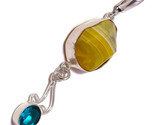 Yellow Striped Agate, Blue Apatite Gemstone 925 Silver Overlay Handmade Double Drop Pendant