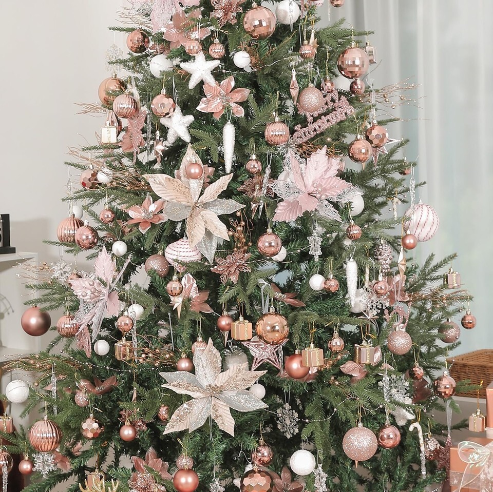 Rose Gold Christmas Ball Ornaments:These basic 36 combination Christmas balls have solid colors and different unique Christmas element shapes, such as glazed, matte, glitter and faceted. These classic Christmas balls decorations are perfect for decorating your Christmas tree and lighting up your holiday.