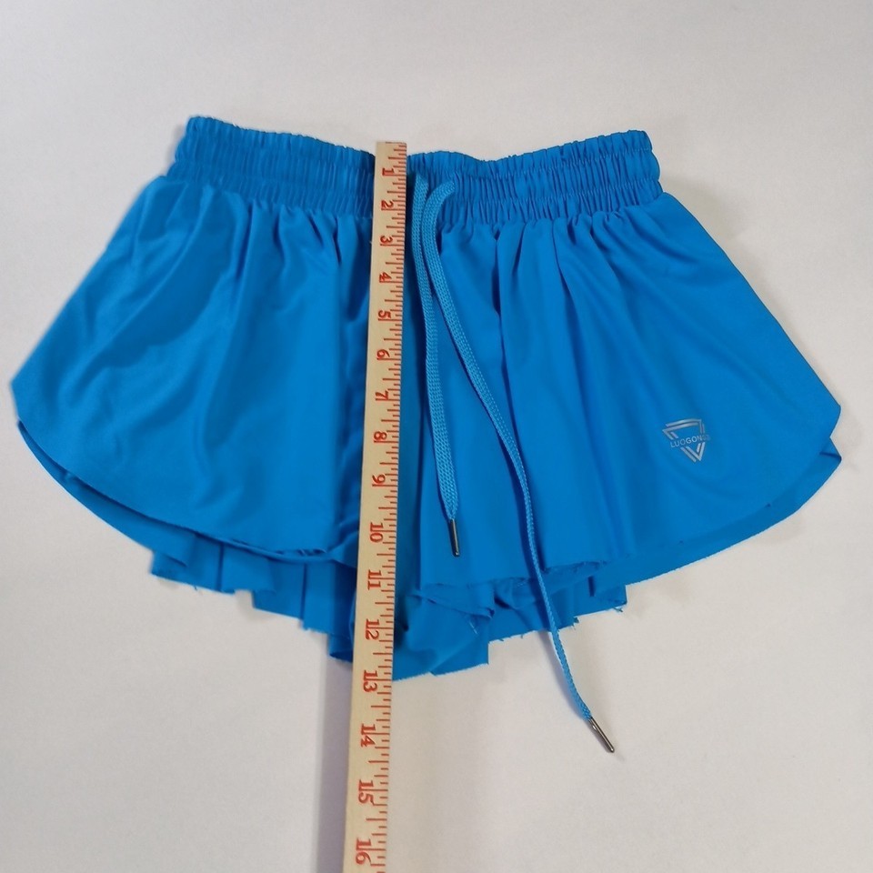 The Luogongzi 2 in 1 Flowy Running Shorts in size Small are a vibrant blue activewear piece perfect for gym, yoga, or casual wear. Made from a blend of super soft nylon and spandex, these shorts feature a drawstring closure, elastic waist, and a lightweight, breathable design. The flowy style adds a touch of athletic elegance, while the quick-dry fabric ensures you stay comfortable during your movements. Perfect for the summer, fall, and spring seasons, these athletic shorts are a stylish addition to any woman's wardrobe. Normal wear.