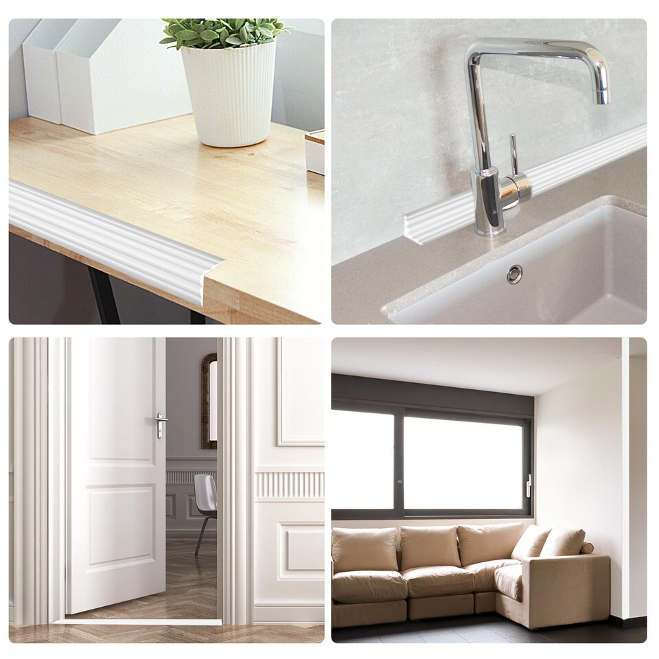 MULTIPLE APPLICATIONOur corner trim can adhere to almost any corner surface (tile, plastic, marble, metal, glass, wood, smooth walls, etc.), making it perfect for bathrooms, bedrooms, living rooms, kitchens, offices, toilets, RVs, backsplash, TV background wall, crown moulding, baseboards, ceilings, framing, cabinets, mirrors, and more.