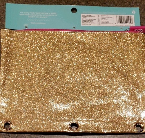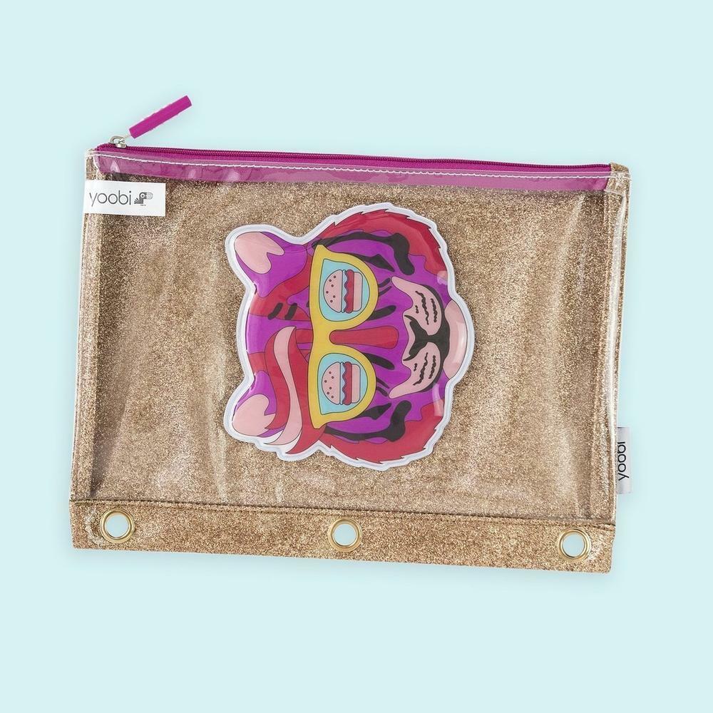 - Yoobi Brand ~ Binder Zip Case ~ Gold Glitter & Multi Colored ~ Glitter Tiger