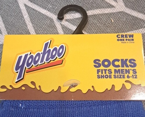 Add a pop of fun to your sock collection with these Yoohoo Novelty Crew Socks. Designed to fit men's size 6-12, these mid-calf socks feature a colorful Yoohoo character print that will surely make you stand out. Made of machine washable polyester material, these socks are easy to care for and perfect for walking or any other activity.
