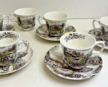 Set of 5 and extra cup without saucer. Each set measures 3.25" tall and saucer measures 5" across.
