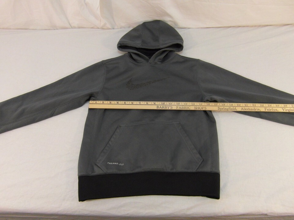 - Youth MEDIUM Nike Therma-Fit Gray Black Tan Swoosh Athletic Hoodie Sweater
