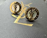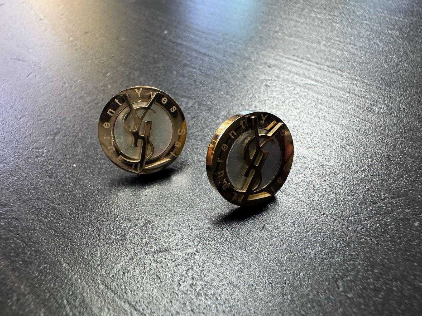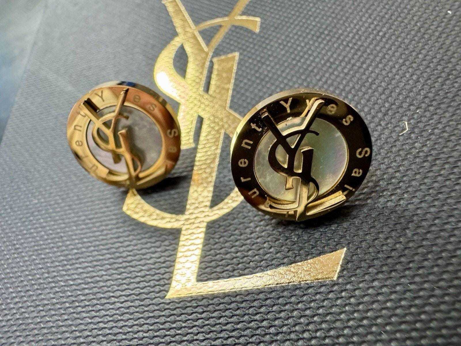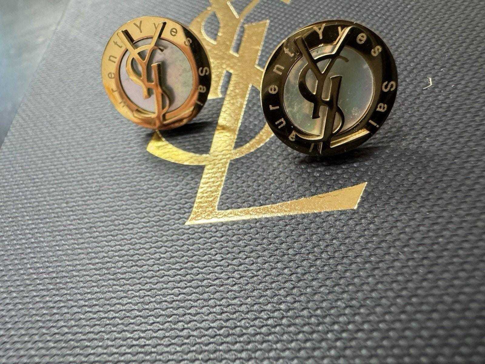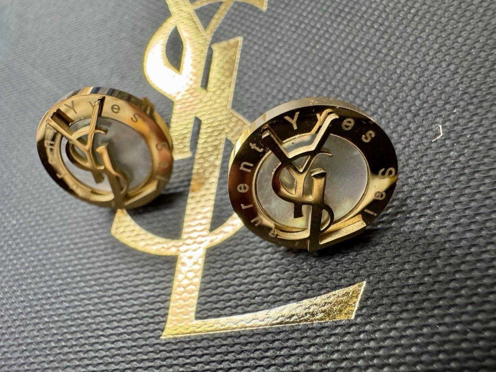 - Yves Saint Laurent YSL Minimalist Logo Mother Pearl Gold Tone Stud Earrings